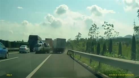 监控实拍:高速大堵车 货车刹车失灵 致连环追撞...