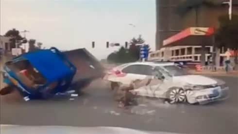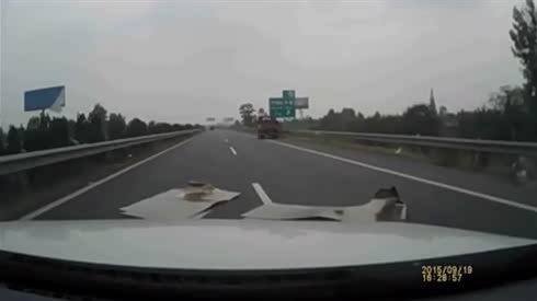 监控实拍:大货车上突然掉落大量铁皮 吓尿了...