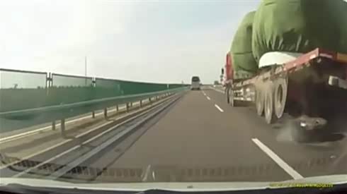 监控实拍:大货车后胎突然爆裂 直接跳了起来 吓尿了...