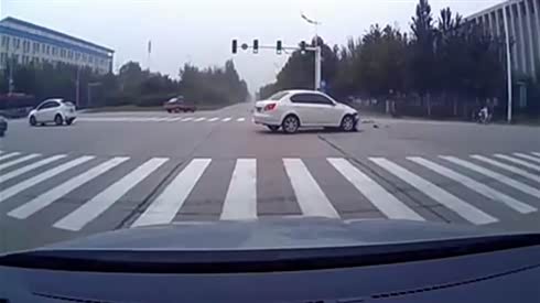监控实拍:SUV一路狂飙 闯红灯被小车顶翻...