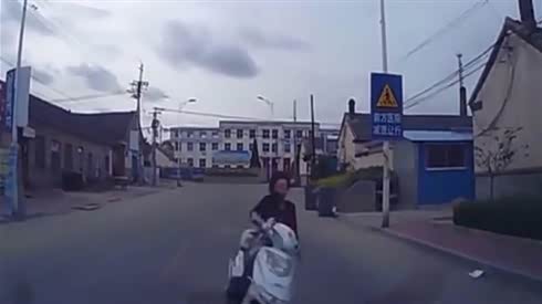 监控实拍:电车女突然逆向飞来 瞬间杯具了...