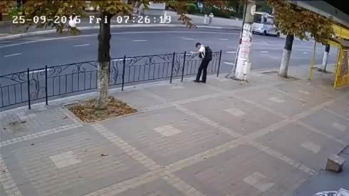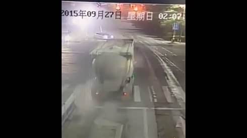 监控实拍:吓尿了!2015年度最幸运的人 3秒之差捡了一条命...