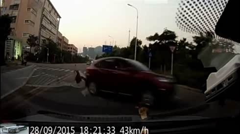 这是碰瓷还是自杀 女司机都吓哭了