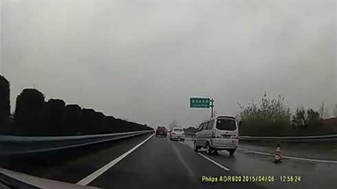 监控实拍:高速惊魂!面包车突然失控甩尾 险撞上...