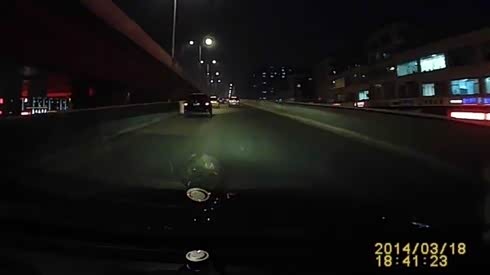 进入高架桥 这女子两站中间是否有病 差点撞上