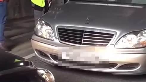 实拍:汽车撞毁 车库门前摆地摊恶作剧