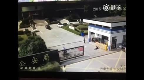 多大仇呢?实拍轿车公安局前撞飞两人