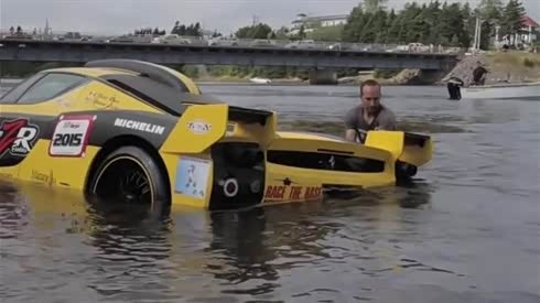 法拉利恩佐FXX 失控冲进湖里
