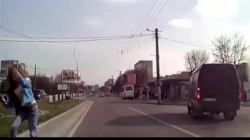 监控实拍:女孩过马路犹豫不决 被车撞飞...