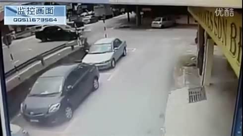 监控实拍:两车相撞 女子遭殃...飞来横祸