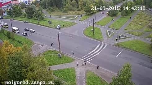 恐怖车祸 警车闯红惨被撞飞 警灯都撞没了