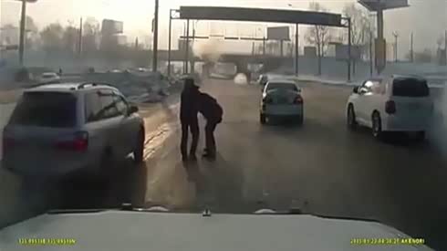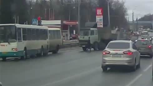 监控实拍:女子横穿马路 大货车急躲避 追尾公交车...