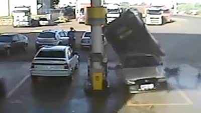 场面惊人 监控实拍失控皮卡冲撞加油站