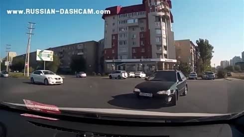 监控实拍:不愧战斗民族!两车斗气掉沟里 车里爬出继续开打...