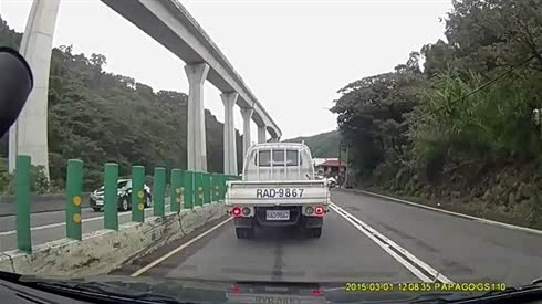 监控实拍:这么窄的弯道超车 被撞爆胎 杯具了吧...