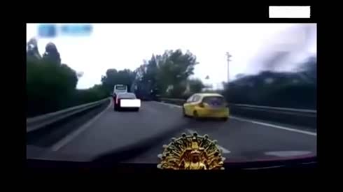 监控实拍:轿车刮蹭大卡车 失控惨撞隔离带...