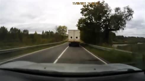 太恐怖了-大货车弯道失控翻车