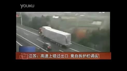 大货司机错过高速出口 竟自拆护栏强行掉头