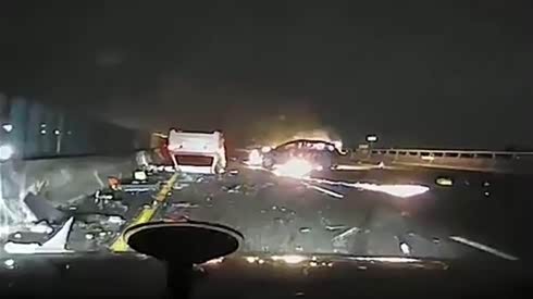 监控实拍:两车惨烈相撞 瞬间被大火吞噬...