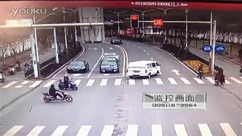 监控实拍:又遇鬼探头 电车男女倒霉被撞...