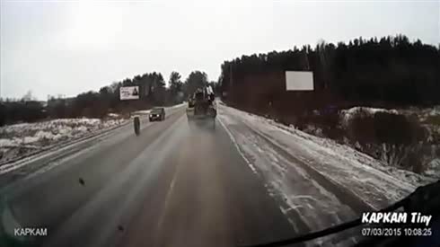 监控实拍:雪地行车 吊车轮胎突然飞出 对面轿车惨遭爆头...