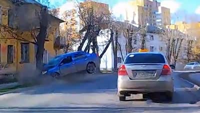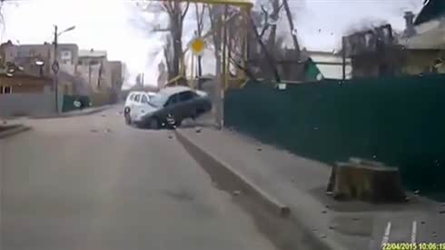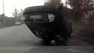 监控实拍:乡间小路 小车狂飙失控 撞树翻车...