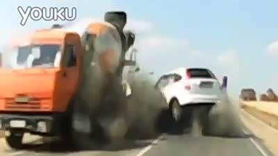 监控实拍:这也敢超!超车失败 惨遭大货撞毁...