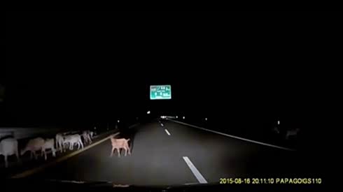 监控实拍:卧槽!夜行高速 突遇一群羊 吓尿了...
