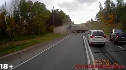 监控实拍:小车夹缝中超车 被大货车迎头撞碎...