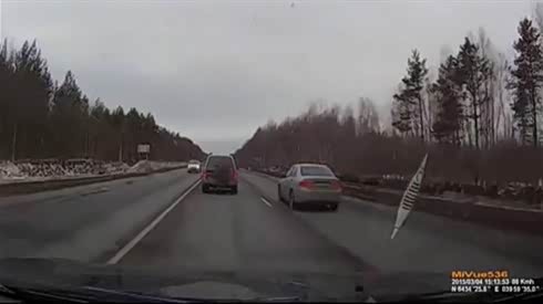 监控实拍:小车高速突然失控追尾 致前车撞向护栏 360度疯狂打转