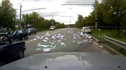 监控实拍:两车追尾 男子幸运 也吓尿了吧...
