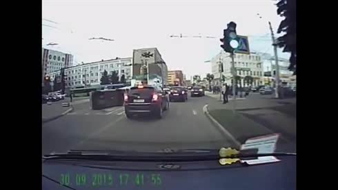 抢行加闯灯 实拍摩托车路口惨被撞翻