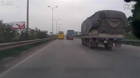 监控实拍-倒霉司机违章强行超车连续追尾