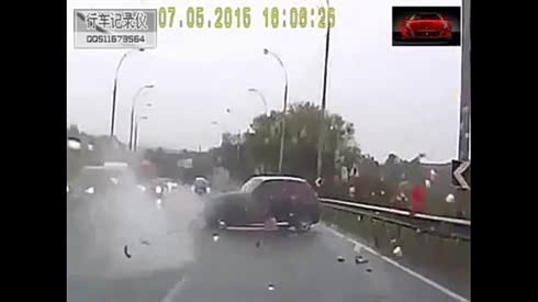 横冲直撞 实拍小轿车高速失控酿惨祸