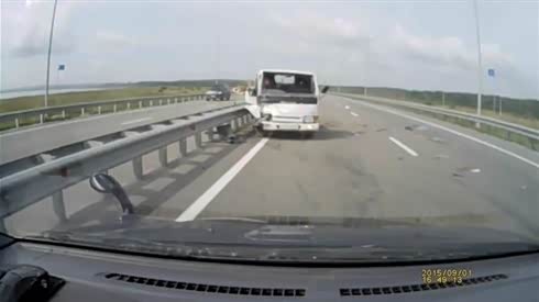 处处是危险!空旷高速小货撞飞路肩小轿车