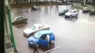 监控实拍:神奇的一幕 小车被撞 竟然蹦跳躲闪...