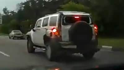 刹车不及!悍马H3路口惨遭大货车追尾