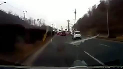 监控实拍:飞来横祸!对面车道突然飞出一辆SUV 惨烈爆头...