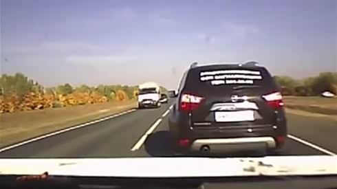爆笑实拍-司机超车后不减速追尾前车