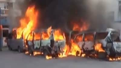 现场拍汽修厂失火 十几辆车被大火吞没