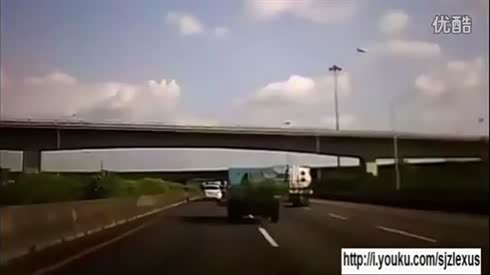 监控实拍:失控大货车翻腾而来 真的吓尿了...