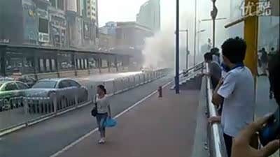 实拍广州天河区马自达323轿车自燃事故