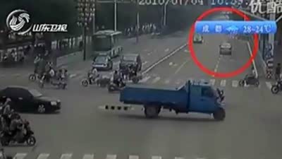 监控实拍:不可思议的追尾