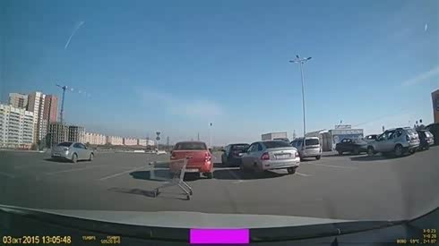 爆笑倒霉透顶-车停的好好地竟然被购物车撞了一下