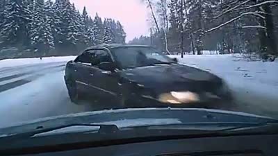 迎面对撞 小轿车雪地失控引发猛烈车祸