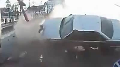 反应够快 幸运俄罗斯车友躲过致命车祸