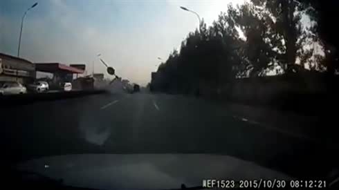 监控实拍:如此不可思议的车祸 太倒霉了