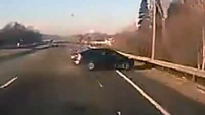 太过鲁莽 实拍小轿车追尾失控翻出公路