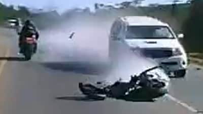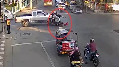 鲁莽大意 实拍摩托车路口遭皮卡撞飞