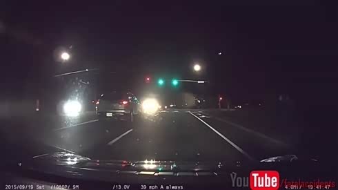 闯红灯的恶果 违章轿车路口遭毁灭撞击